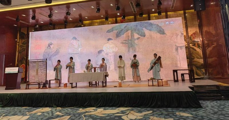 当日下午,还举行了2023梵净山抹茶大会,现场演绎了宋代点茶宴,在悠扬的古琴声中,茶艺师将雅致的宋代点茶茶艺带入了现代茶饮生活之中,让大家充分了解了抹茶的“前世今生”及独特魅力,对抹茶有了更深层次的认识。