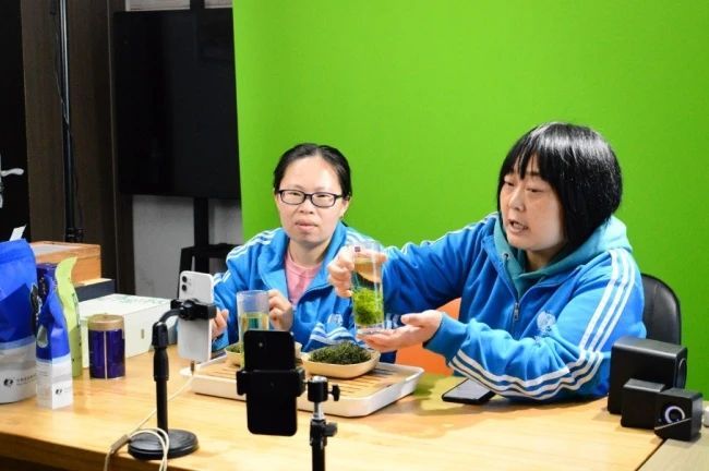4月27日,第四届陕西网上茶博会探访团走进平利县富硒堂茶业公司。直播间里,专职的主播正在进行抖音电商直播,为五一的促销活动预热。