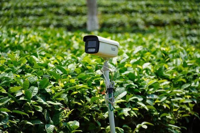 “茶园里的摄像头就像是‘眼睛’,24小时不间断地观察和记录茶叶的生长情况。”胡志海介绍,通过安装在电信基站上的5G高清全景摄像头,能看到方圆500米每一片茶叶的“面孔”,是否有虫害等情况一目了然。