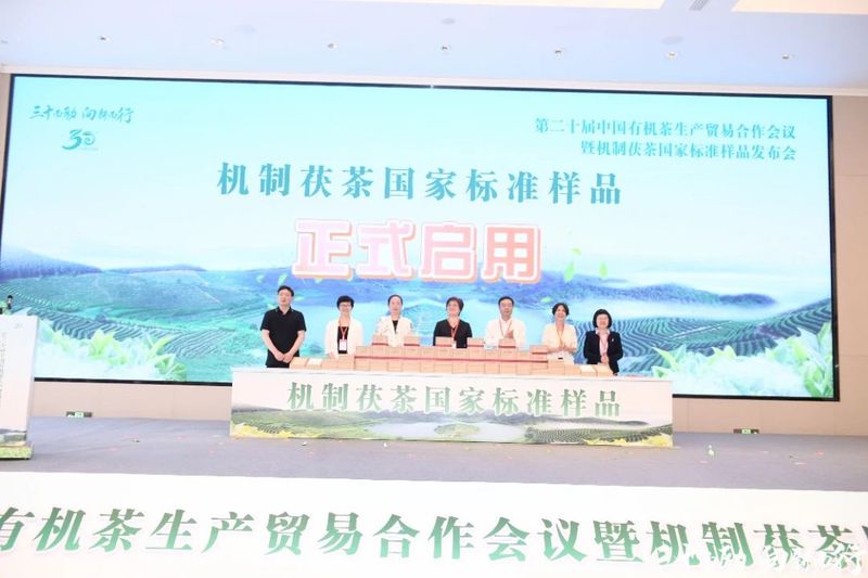 5月23日,机制茯茶国家标准样品启用发布会在浙江武义召开。机制茯茶实物标准样品由中华全国供销合作总社杭州茶叶研究院和湖南农业大学联合主持研制。当天,安化县茶业协会及中茶湖南安化第一茶厂有限公司、湖南省白沙溪茶厂股份有限公司、湖南华莱生物科技有限公司、湖南阿香茶果食品有限公司、安化连心岭茶业有限公司等协会会员单位与其他20余家项目参与研制单位、原料提供单位和支持单位共同参会,共襄盛举,共话发展。