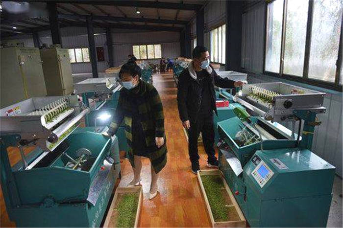 “茶娘”忙采摘,茶企忙加工。随着春茶开采,而在银杏堂村大梁组占地800平方米的茶叶加工厂内,在第一条已组装好的生产线上,数台炒茶机在徐徐运转,揉捻、烘青、压扁、脱毛……来自浙江绍兴的炒茶师在忙碌着加工茶叶,炒制干茶现场呈现出一派繁忙景象,鲜嫩的茶叶经过加工后变成干茶,厂内洋溢着阵阵浓郁的茶香。
